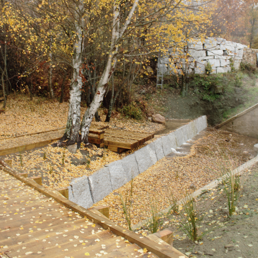 La solución planteada: introducir en el sitio una serie de elementos que, en su rotundidez, en su rudeza, pudieran integrarse como piezas de una obra de “land-art”, y que por su simplicidad y rapidez de montaje permitieran reducir costes al mínimo.